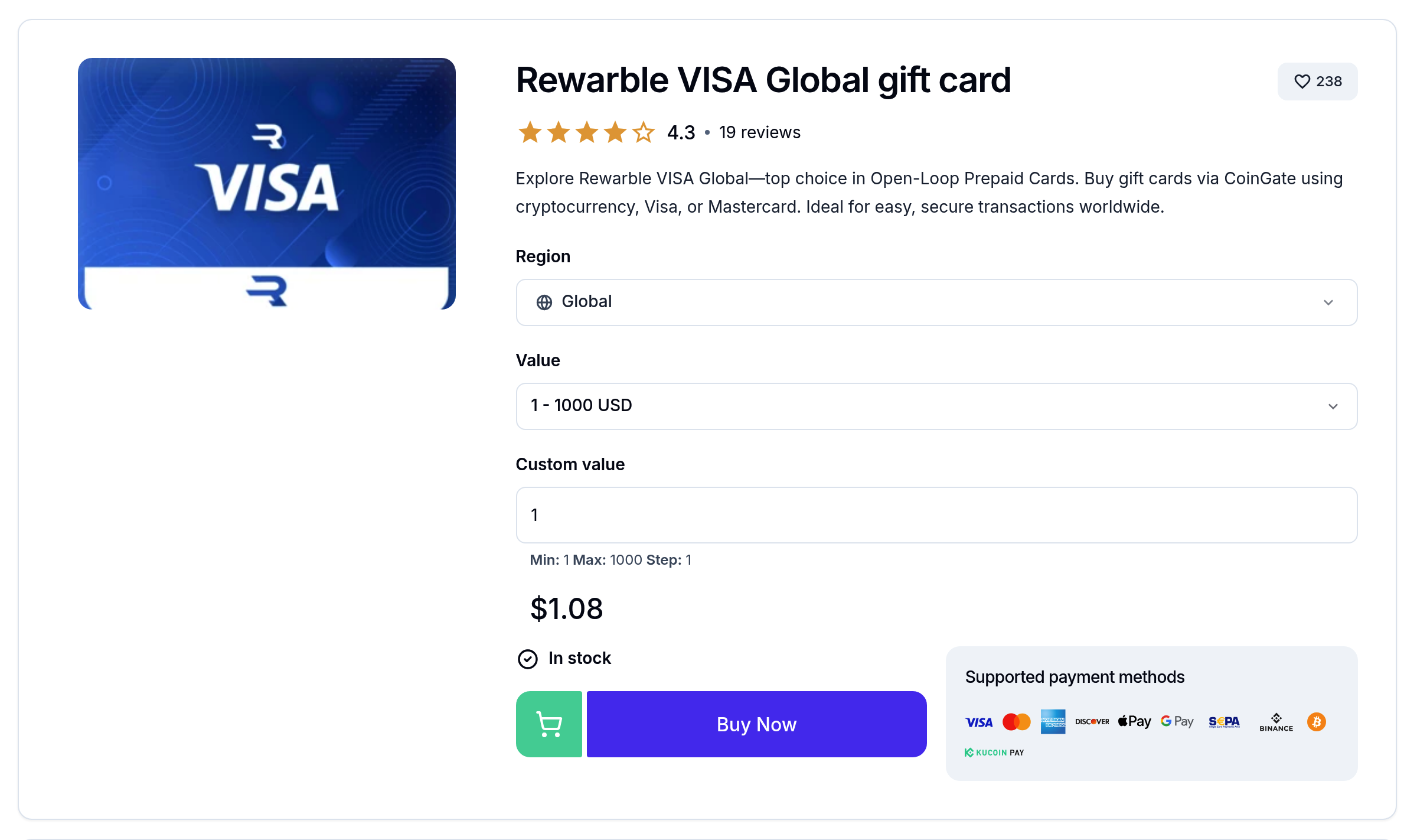 Saisissez le montant de l’offre Atlas PRO ONTV que vous avez choisie dans le champ « Valeur personnalisée », puis cliquez sur « Acheter » pour procéder au paiement.